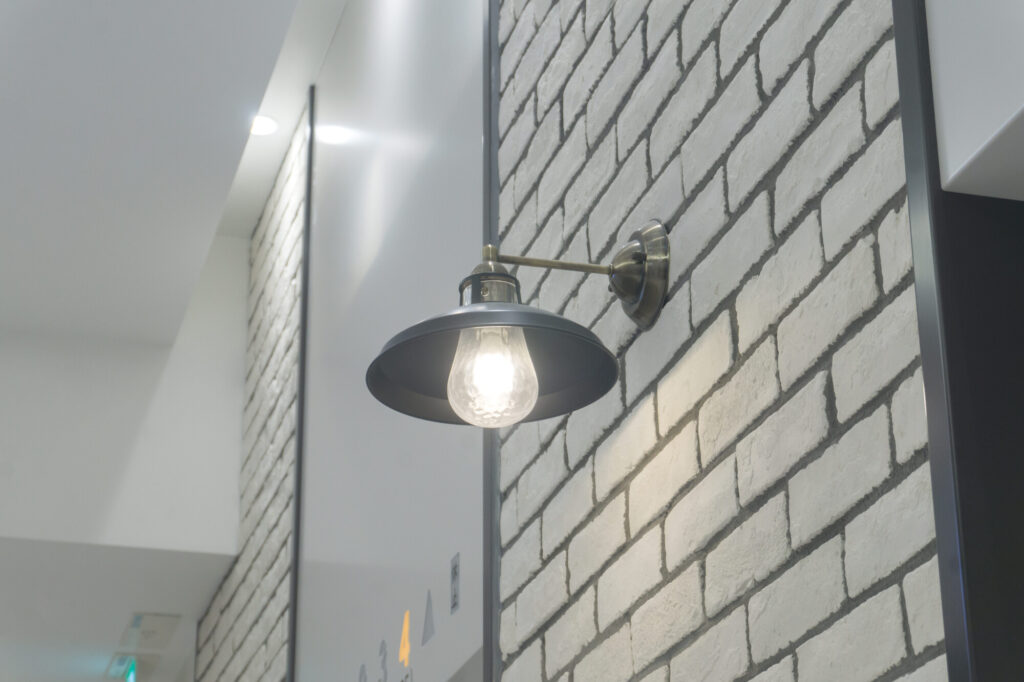 壁に取り付けるタイプの照明で、通路や壁面に柔らかい光を加えたいときに使われます。